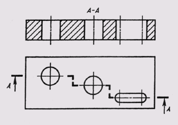 построении ломаных разрезов (рис. 180) одну секущую плоскость располагают параллельно