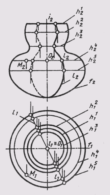поверхности. На рис. 103 точка М построена на параллели h4.