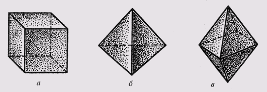 (рис. 99, 6) октаэдр — многогранник (рис. 99, в). Форму различных многогранников