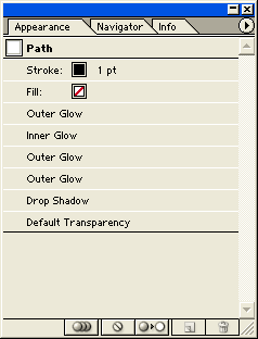 В палитре Appearance (Внешний облик) отображаются следующие данные: