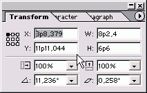 Вы можете также изменять размеры объектов, используя палитру Transform