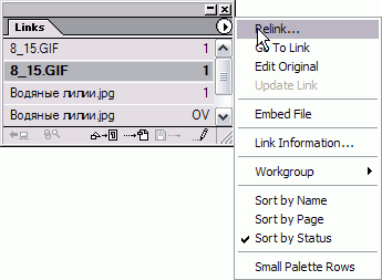 Или Выберите опцию Update Link из меню палитры Links. Вы можете выбрать более одной связи, чтобы обновить разные графические изображения. Палитра Links позволяет быстро перейти к определенному изображению. Переход к связанной графике