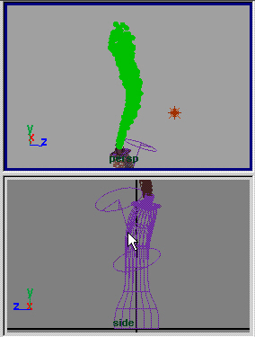на кадре № 50 и щелкните на испускаемых частицах. В окне проекции Perspective