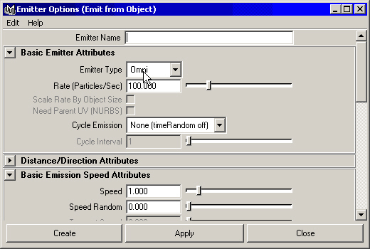 раздела Basic Emitter Attributes (Базовые параметры генератора) выберите вариант