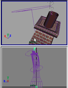 файл или файл chl3tut02start.mb. Смоделируем дым, идущий из трубы дома, и назначим
