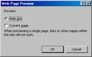 А вот на рисунке 21показан диалог, который возникает после щелчка на опции Web Page Preview (Просмотр Web-страницы). Ответив на вопрос, конечно, положительно (только при этом выбрав, что вы хотите просмотреть — Web-сайт или текущую страницу), вы получите программу Microsoft Internet Explorer — и просматривайте. Заниматься этим не будем, идем дальше.