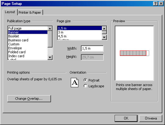 А вот тип Banner (Знамя, Стяг), а по-нашему, насколько я понимаю, Полоса. Если же печать на этой полосе, которую вы видите на рисунке 26, осуществить с двух сторон и по тому порядку, чтоб сложить ее в детскую Книжку-гармошку, ев) можно назвать еще Раскладушкой.