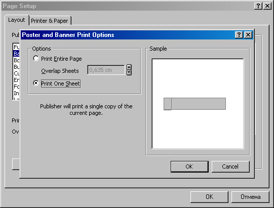 Всей Полосы, Страницы) и Print One Sheet (Печать Одного Листа). В первом случае Наложения (Перекрытия) имеют место, а во втором их нет,