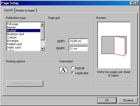 Буклет (Booklet). Рис. 29. Буклет Из рисунка 29 видно, что никаких опций в поле Параметры Печати не