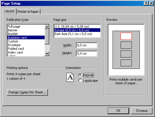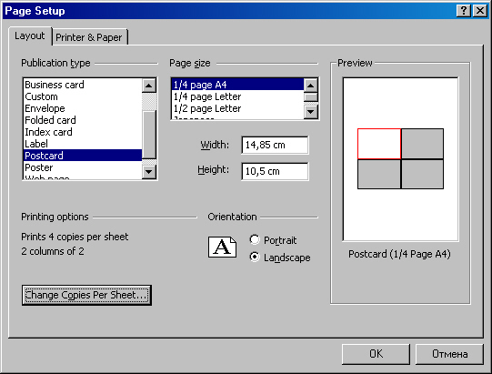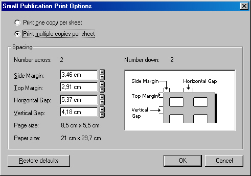 Откроем же кнопку Change, Copies Per Sheet... (Изменить число копий на листе...) и получим диалог Параметры Печати Мелких Публикаций (Small Publication Print Options).