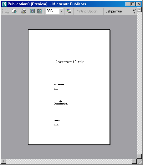 Наконец, все «успокаивается», и на экране остается опять одна только наша первая страница публикации, которая, как вы помните, является титульным листом.