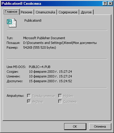 изменялся, кто автор и так далее. Рис. 42. Диалог Properties (Свойства) Следующая группа из четырех (или меньше) строчек с именами файлов — это