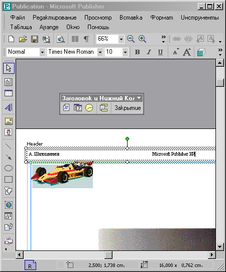 кнопками Панели Header and Footer и можем вписать в колонтитул все, что