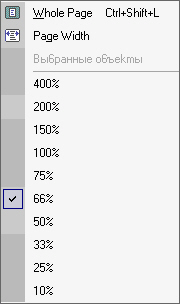А мы взглянем на опции, записанные словами. Это: Whole Page (Целая Страница) и Page Width (По Ширине Страницы), а также Selected Objects (Выделенные Объекты).