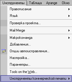 Рис. 32. Меню Commercial Printing Tools и его подменю