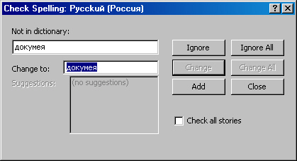 Рис. 3. Диалог Проверки Орфографии