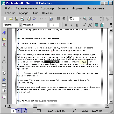 Когда такая работа над текстом будет совершена, вы сможете подать текст вместе с тэгами в Publisher, и он в соответствии с этой кодировкой самостоятельно отверстает его. Может показаться, что тэги — то же самое, что макросы, но на самом деле они гораздо более консервативнее макросов и сценариев: ведь макрос записывает сама программа на основе вашей ручной работы с объектом — будь то текст или картинка, а здесь вы все выполняете вручную, с клавиатуры, да еще и становитесь при этом как бы программистом, то есть возвращаетесь в приснопамятное время ДОСа.