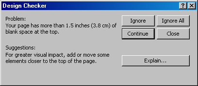 Вот он нашел проблему: Problem: This frame is empty (У вас найден пустой фрейм). И сообщает дальше: Suggestions: Delete the empty frame. For more information click Explain. (Предложения: Удалить пустой фрейм. Для дополнительной информации кликните Explain.). Мастер говорит про кнопку, которая находится в диалоге ниже всех.