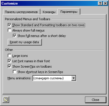 Опция Tools on the Web... вызывает утилиту Microsoft Office Tools, но у меня она просто не вызывается из-за того, что нет связи с Интернетом. Даже на интерфейс этого чуда программистской мысли мы взглянуть сейчас никак не сможем. Идем далее.