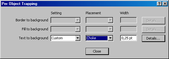 Еще вы видите, что по умолчанию в поле имеются назначения только для Линий (Line) и Imported pictures (Импортированных рисунков). Для Заливок (Fill) треппинг не предусматривается или назначается в более «вольных» вариантах.
