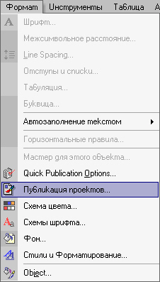 Идем далее. Нас ждет опция Publication Options... (Параметры Публикации...).