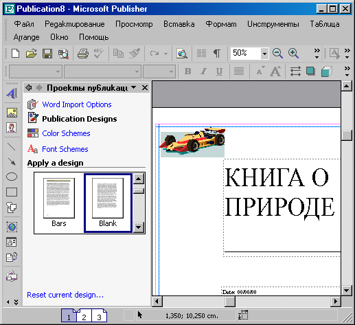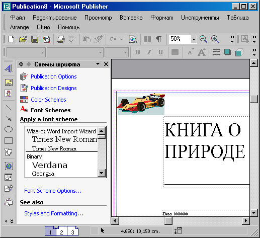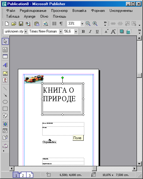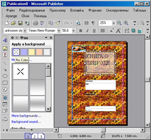 не документ. Все возможности форматирования в Publisher, как и в других приложениях