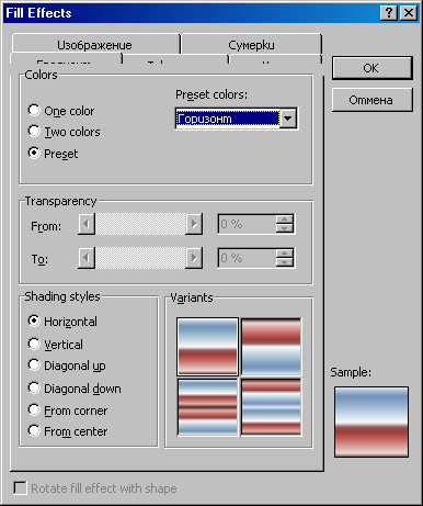 Эта гиперссылка вызывает диалог, который вы видите на рисунке 31. Вглядимся в него. По умолчанию он открывает вкладку Градиентная заливка (Gradient).