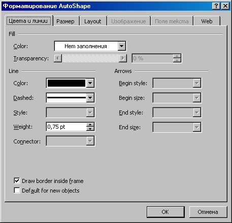 Нарисуем автофигуру (любую) и вызовем тот же диалог из меню Format.