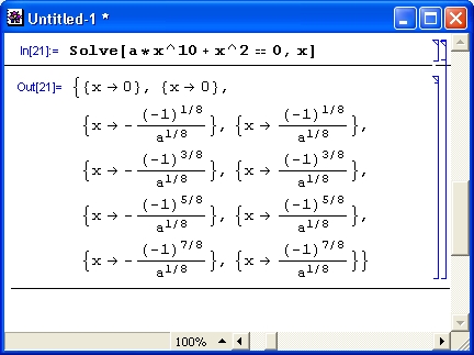 Рис. 1.9 . Система Mathematical решает алгебраическое уравнение 10-й степени
