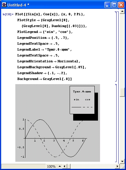 Рис. 14.51. Пример построения графика двух функций с легендой и установкой ряда ее опций