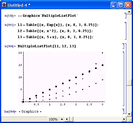 Применение функций подпакета MultipleListPlot наиболее ценно при визуализации математических расчетов, где преобладают графики тех типов, которые создаются этими функциями.