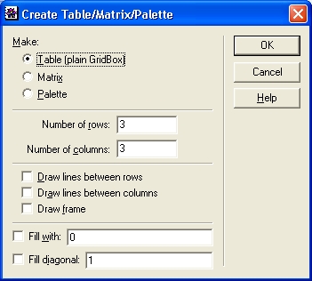 Рис. 2.33. Работа с окном Create Table/Matrix/Palette