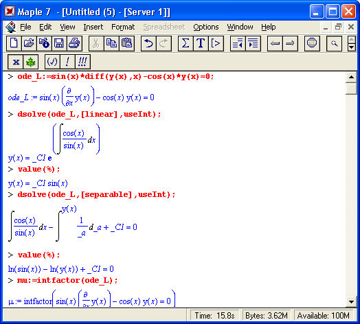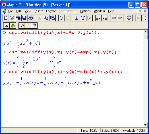 Следующие примеры иллюстрируют возможность решения одного и того же дифференциального уравнения ode_L разными методами: