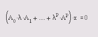 где степень полинома р — целое неотрицательное число, а А 0 , А 1 ,..., А p — входные матрицы порядка п. Выходная матрица X размера nхnр содержит собственные векторы в столбцах. Вектор е размером пр содержит собственные значения.