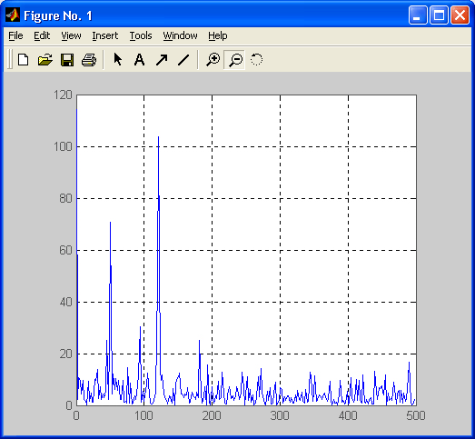 Рис. 17.8. График спектральной плотности сигнала после одномерного преобразования Фурье