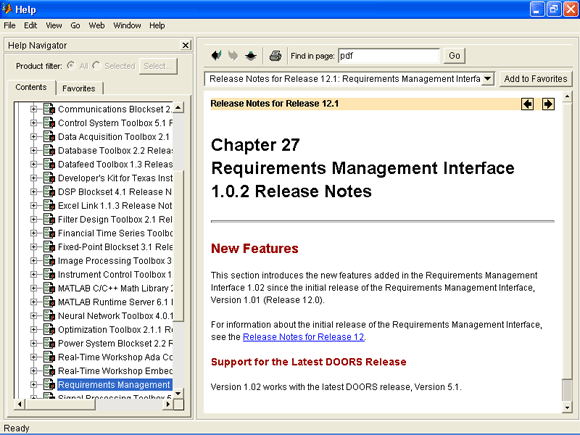 Возможность просмотра документов в этом формате требует наличия программы Adobe Acrobat Reader (можно бесплатно скачать с web-узла фирмы Adobe www.ado-be.com) и файлов самих документов. Не все поставки системы MATLAB имеют эти средства. Полный объем документации по системе MATLAB 6.0 и пакетам прикладных программ уже превышает 600 Мбайт, что делает документацию труднообозримой.