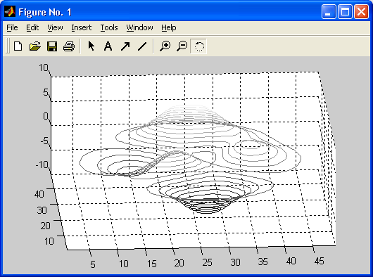 contour3(Z) — строит контурные линии для поверхности, заданной массивом Z, без учета диапазона изменения х и у;