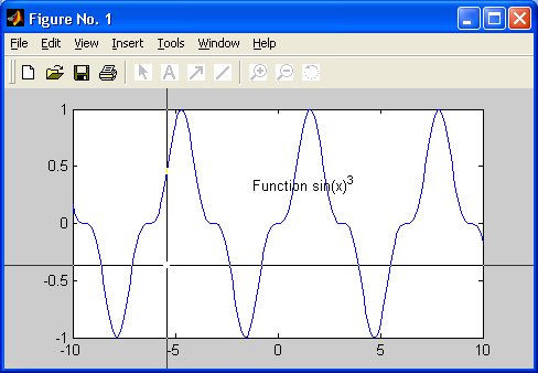 gtext('string') — задает выводимый на график текст в виде строковой константы ' string' и выводит на график перемещаемый мышью маркер в виде крестика. Установив маркер в нужное место, достаточно щелкнуть любой кнопкой мыши для вывода текста;