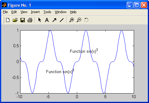 Рис. 6.35. График функции с надписью, установленной с помощью мыши