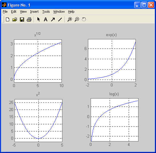 На рис. 8.1 представлены графики ряда распространенных алгебраических функций. Эти графики получены в результате исполнения следующего файла-сценария: