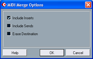 Именно таким средством и является диалоговое окно MIDI Merge Options (рис. 6.39), которое открывается командой