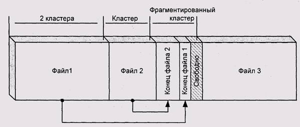 Таким образом, адресация блоками и кластерами позволяет использовать в системных структурах данных короткие указатели, что приводит к уменьшению объема этих структур и к снижению накладных расходов. Под накладными расходами в данном случае подразумевается не только освобождение дискового пространства, но и ускорение доступа: структуры меньшего размера быстрее считываются, в них быстрее производится поиск и т. д. Однако увеличение объема кластера имеет оборотную сторону — оно приводит к внутренней фрагментации (см. разд. Алгоритмы динамического управления памятью).