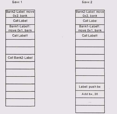 1 по адресу OxlOaf, мы хотим вызвать процедуру, находящуюся в банке 2