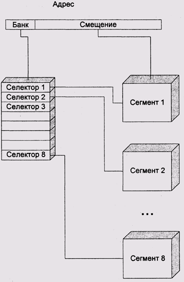 по 8 Кбайт каждый. Каждому из этих сегментов соответствует свой селектор