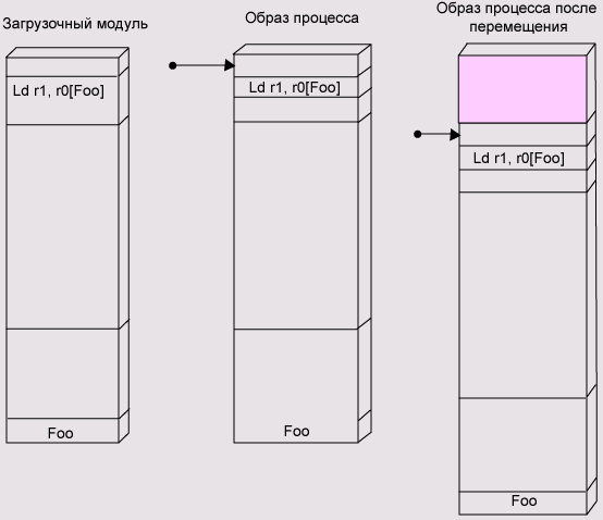 Рис. З.6. Перемещение кода, использующего базовую адресацию В этом случае для перемещения программы нам нужно только