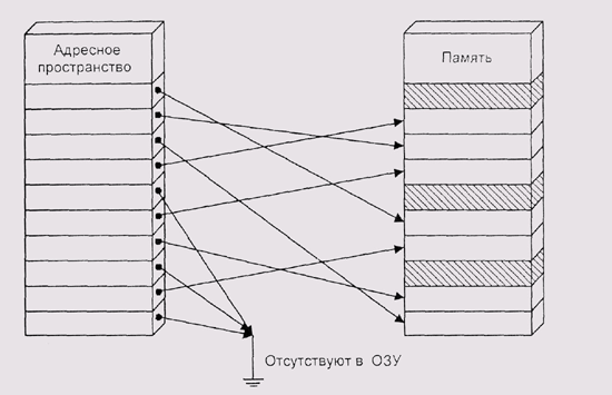 Рис. 5.1. Страничная виртуальная память, а неиспользуемым