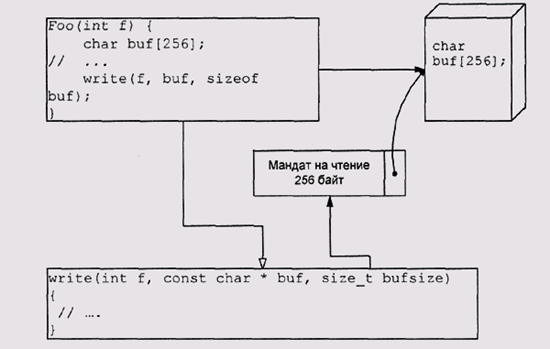 мандат на право записи в буфер buf размером