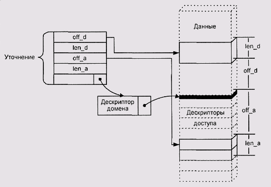 выделен буфер), а программе-получателю передается даже не само уточнение,