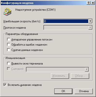 | 5. | Если требуется активизировать динамик модема, установите флажок Включить динамик модема (Enable modem speaker). |