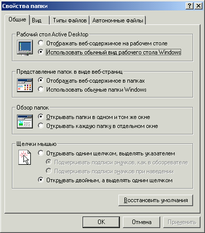 Чтобы выбрать для оформления рабочего стола стиль Веб: